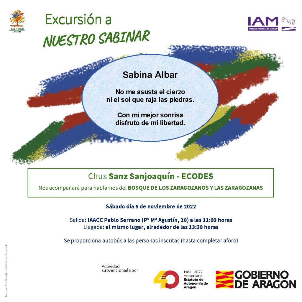 Nos acompañará Chus Sanz de la Fundación Ecología y Desarrollo que nos hablará del bosque de los zaragozanos y zaragozanas del que nuestro Sabinar forma parte.
